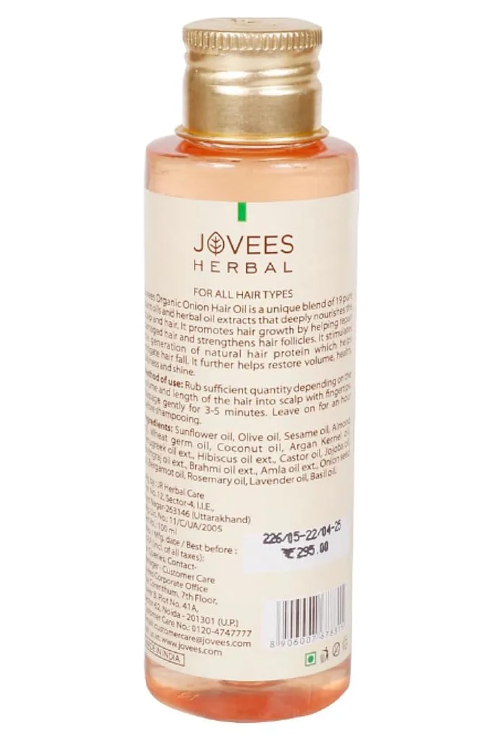 Jovees Herbal Organic Onion Hair Oil 100ML | Controls Hair Fall, Promotes Growth | Contains Onion Seed Oil, Olive oil, Sesame oil, Almond oil | Suitable for All Hair Types