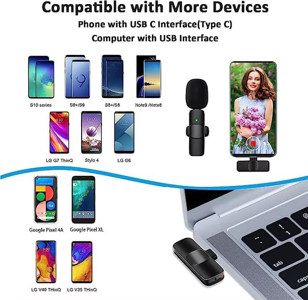 Versatile Wireless Microphone: This compact device seamlessly connects to smartphones, tablets, and computers via Bluetooth for recording high-quality audio with ease.