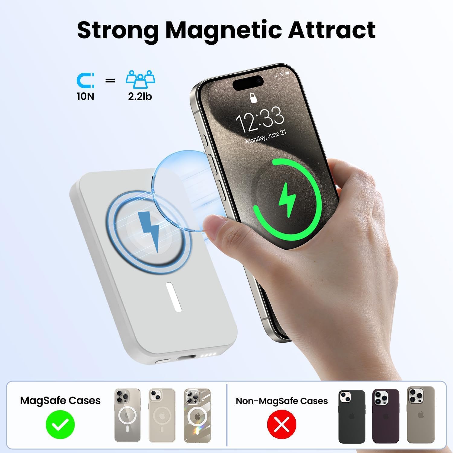 Supports QC & PD fast charging up to 22.5W max, delivering quick and efficient power for smartphones,iPhones and other compatible Qi Enabled Phones.