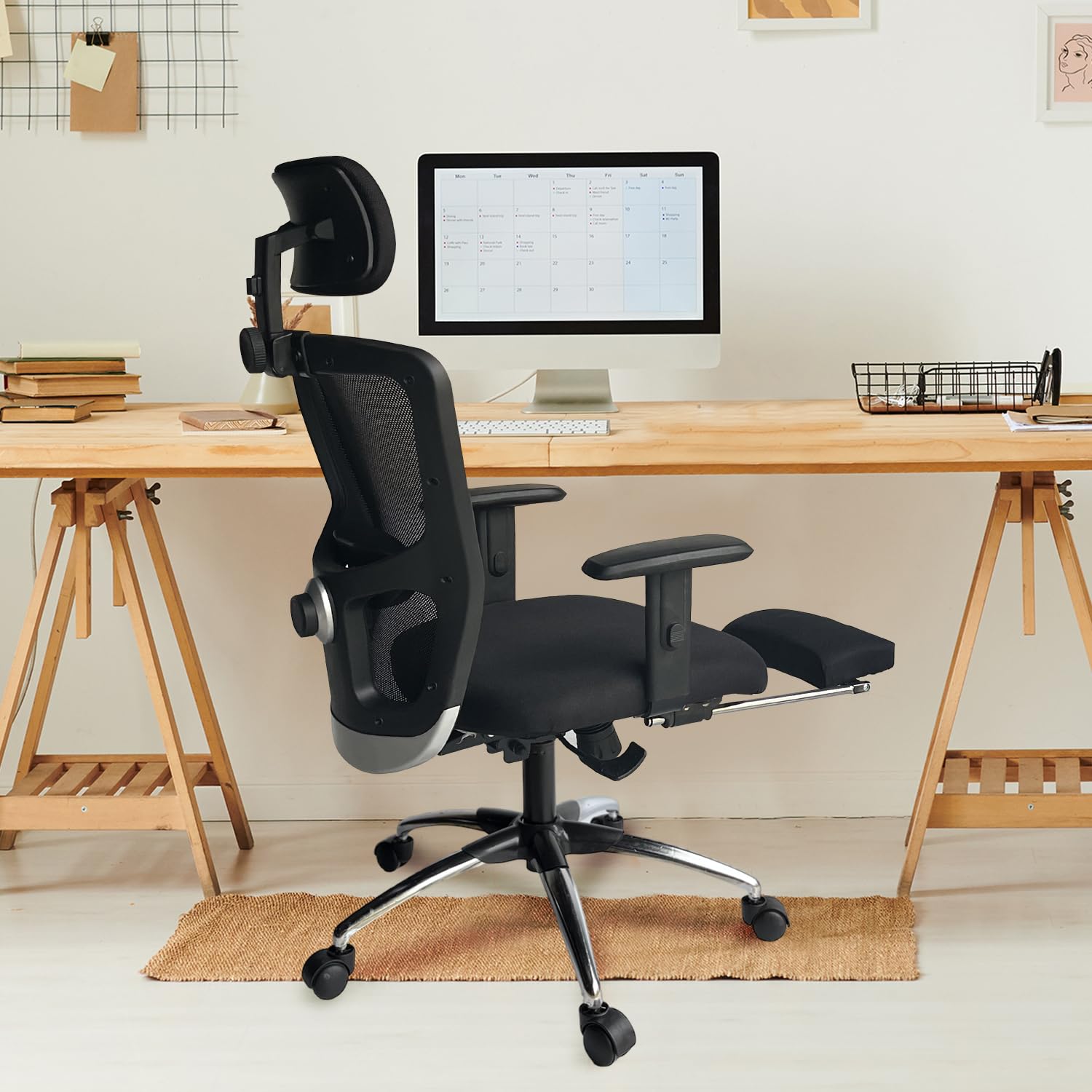 Kepler Brooks Zeus Pro Office Chair for Work | 3-Year Warranty | Ergonomic Office Chair, Study Chair, 2D Adjustable Headrest, Lumbar & Arms, Legrest, Multi Lock Recliner, Heavy Duty Metal Base (Black)