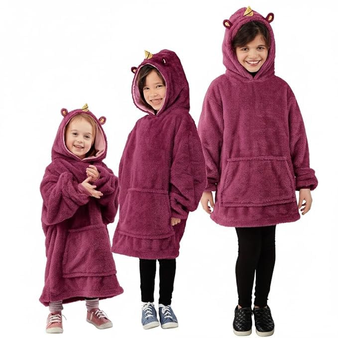 Kids Blanket Hoodie – Wearable Blanket for Girls & Boys, Super Soft Sherpa Fleece, Cozy Oversized Hooded Sweatshirt with Pocket, Warm Cuddly Loungewear for Children