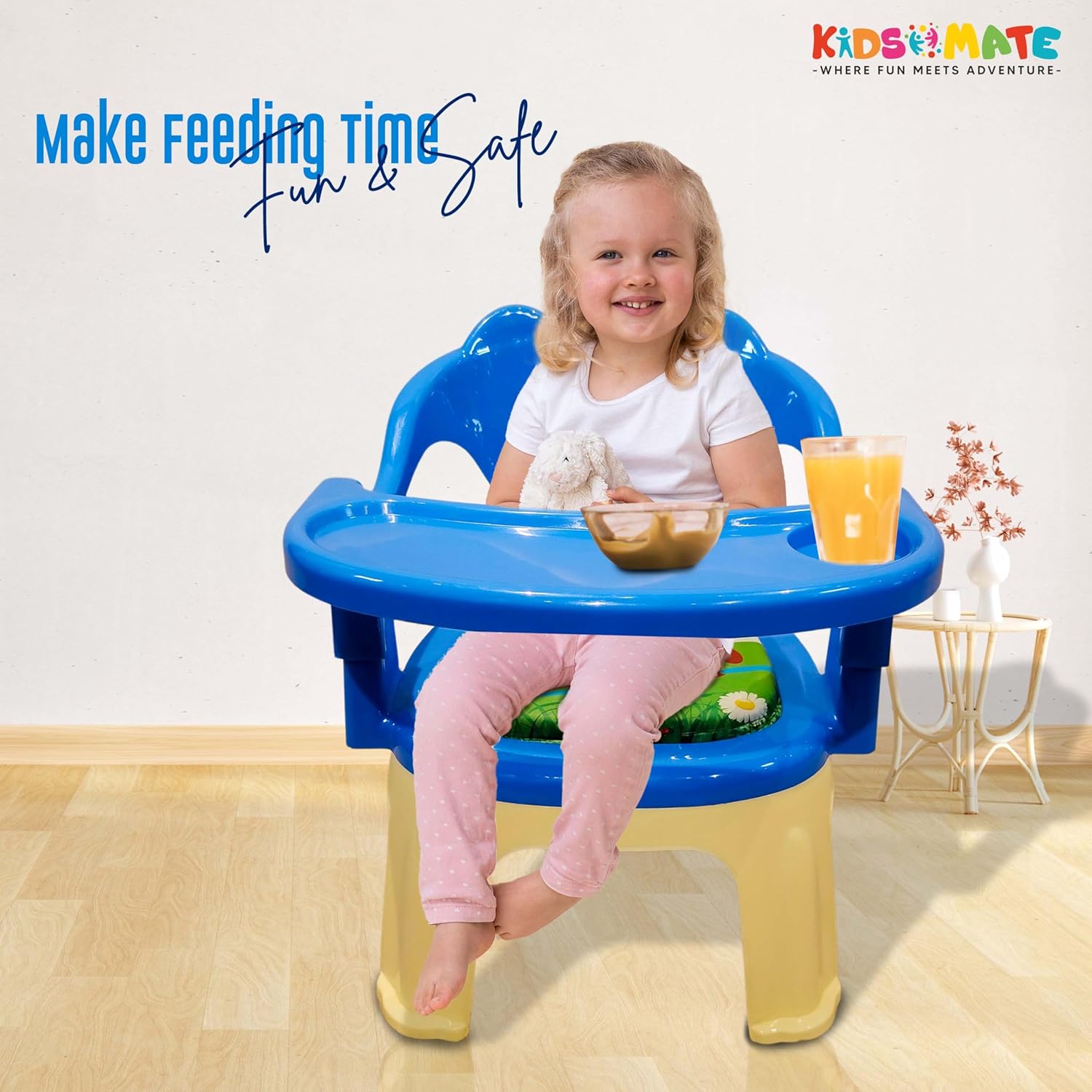 Kidsmate Baby Chair for Feeding & Activity – Soft Cushion, Cute Cartoon Backrest, Removable Food Tray & Armrest | Lightweight & Durable Plastic Chair Ideal for for 1-3 Yrs Up to 30kg (Blue)