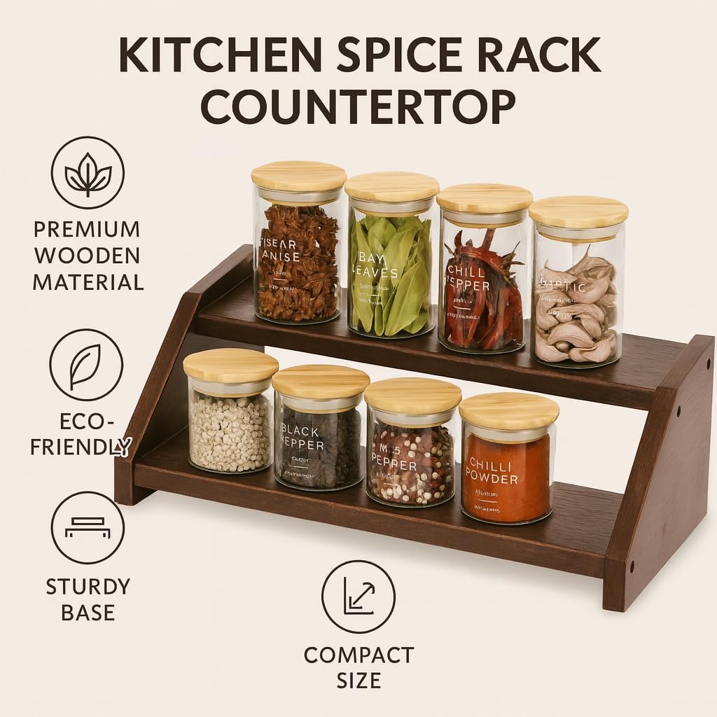 Crafted from sturdy wood, this 2-tier spice rack is built for daily kitchen use. The stable base keeps jars secure, and the smooth surface makes it easy to wipe clean after cooking.