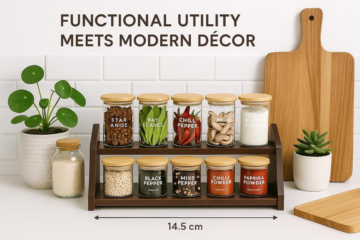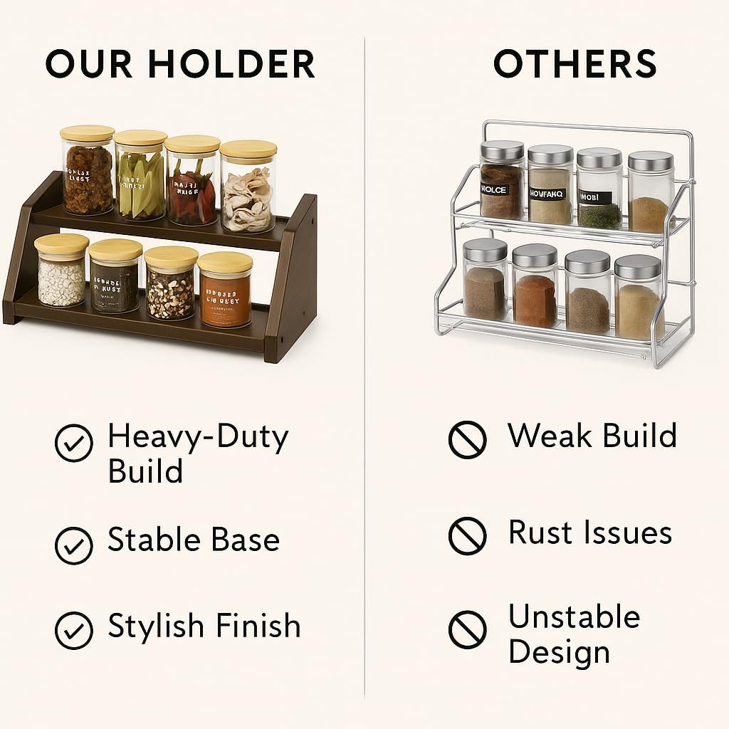 More than just spices—use this wooden rack to organize tea/coffee jars, condiments, oil bottles (small), or even bathroom essentials. A versatile organizer with a premium wooden look.