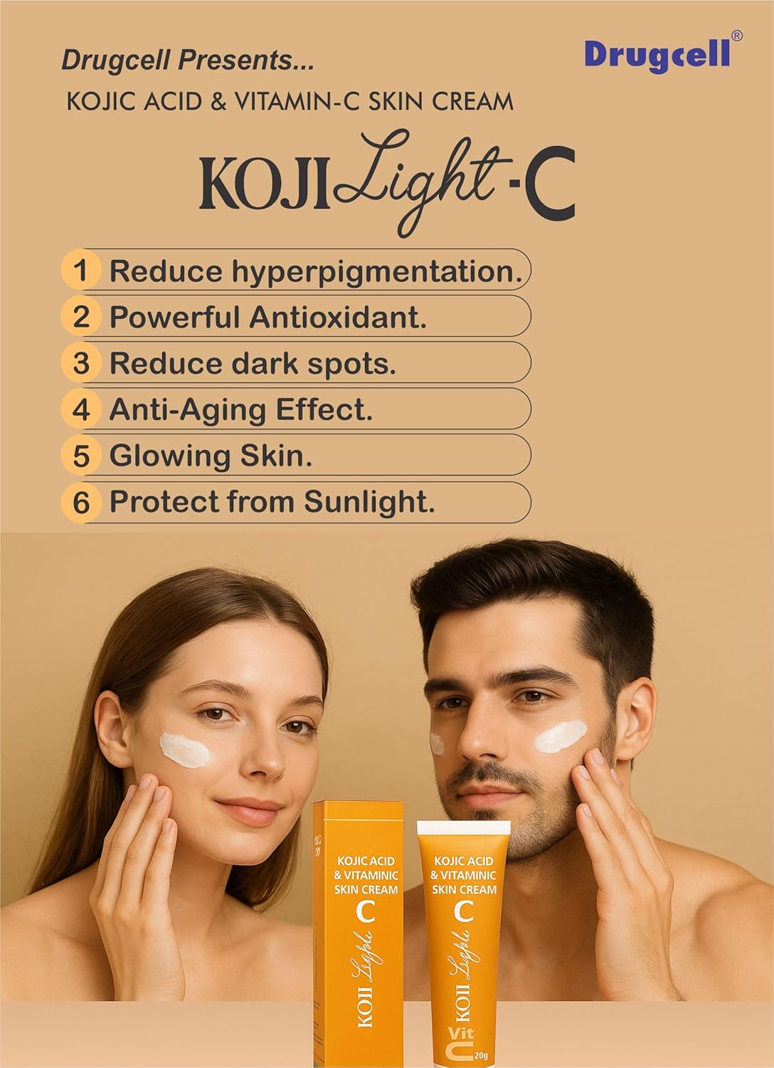 Kojic Acid Vitamin C | Koji Light -C Cream for Face | Skin Brightening | Dark Spot Removal | Anti-Pigmentation | Tan Removal | Anti-Aging | Glowing Skin cream 20 gm