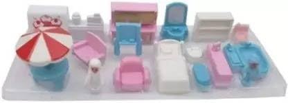KomalSGEnterprises Kids Doll House For Kids Has 18 Pcs With Fully Furnished Doll House Furniture Having One Lady, One Boy Within The Package, Consists Of A Bed, Table, Chairs, Dressing Table, Drawers And Others Little Things To Decorate Your Princess House Beautifully