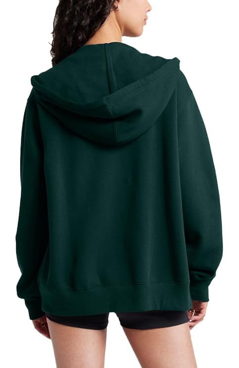 Koverify Cotton Plain Hooded Neck Oversized Zipper for Women (Dark GreenM)