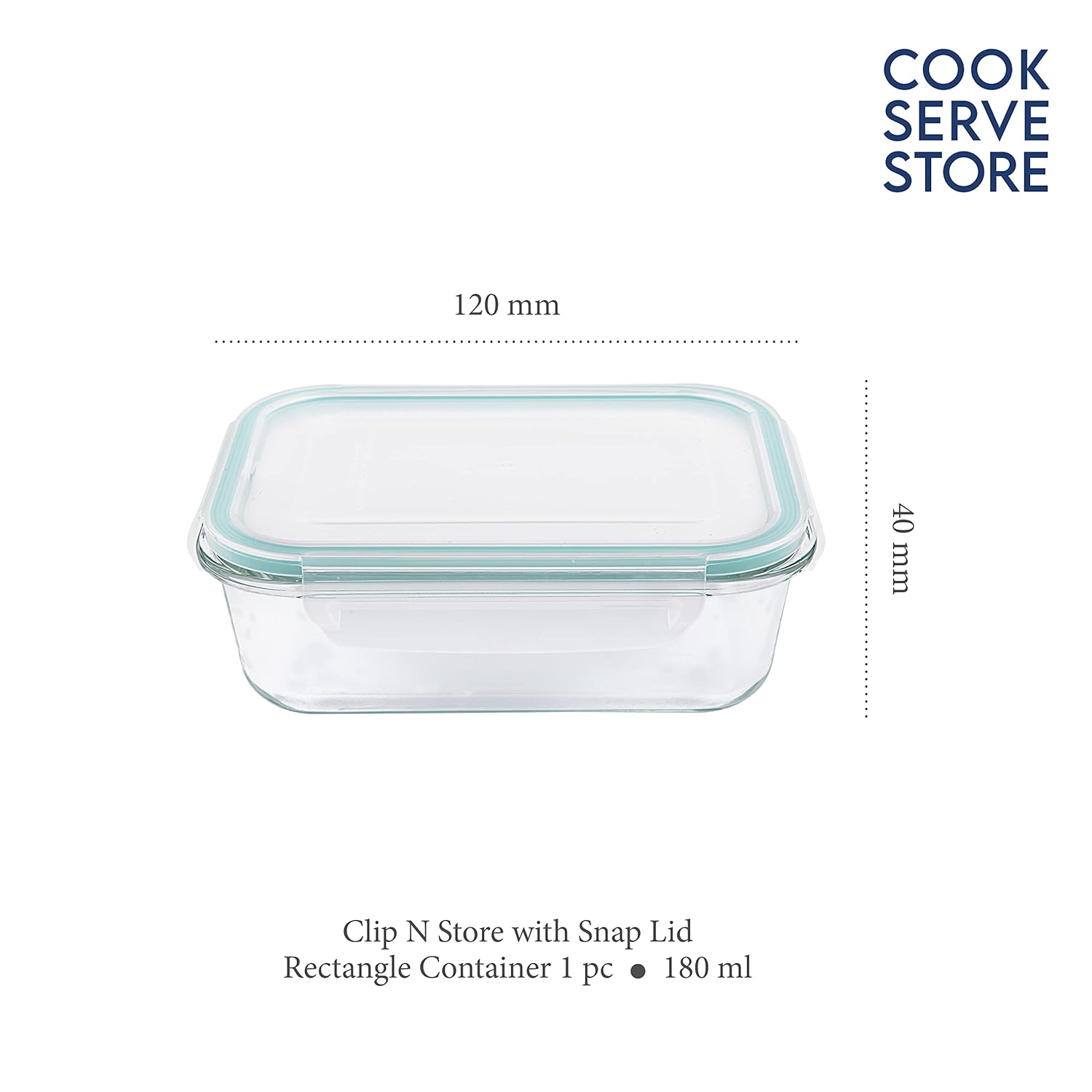 La Opala Cook Serve Store 100% Borosilicate Glass Storage Container | Clip N Store with Air-Tight Snap Lid | Rectangle 180 ml | Microwave & Oven Proof | Dishwasher & Freezer Proof | Transparent