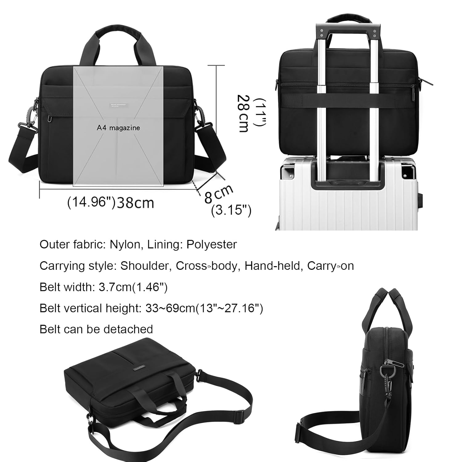 Elevate your professional style with this versatile 14-inch laptop briefcase, thoughtfully designed for both men and women. Crafted from durable waterproof nylon, this lightweight and compact bag seamlessly transitions from business meetings to travel adventures. The practical shoulder messenger design offers comfortable carrying options while maintaining a sleek, professional appearance. Perfect for daily office use, business trips, college commutes, or casual outings, this black handbag combines functionality with modern aesthetics. The bag features ample space for your laptop and daily essentials, making organization effortless. Its robust construction and practical design make it an ideal companion for busy professionals who value both style and functionality. The classic black color ensures this bag pairs well with any professional or casual attire, while the waterproof material keeps your valuable items protected from unexpected weather.