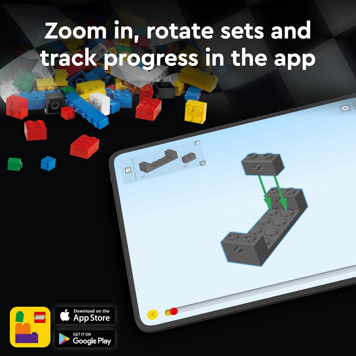 LEGO fans can place the driver minifigure behind the wheel for fast adventures with the Ford Mustang Dark Horse Sports Car.