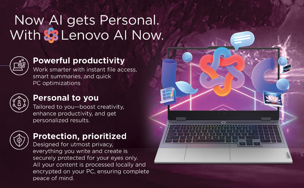 Lenovo AI Engine+ :- Makes gaming easy by optimizing your laptop’s performance automatically. Powered by the Lenovo AI Core, it tunes your CPU, GPU, and system settings for smoother gameplay and better FPS. With Scenario Detection, it adjusts in real time for gaming, streaming, or everyday tasks, ensuring reliable and hassle-free performance