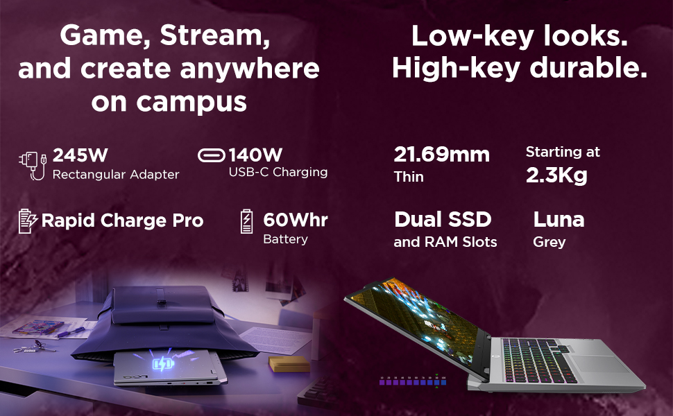 Design: 2.19 cm Thin and 2.4 kg Light | 24-Zone RGB Backlit Keyboard