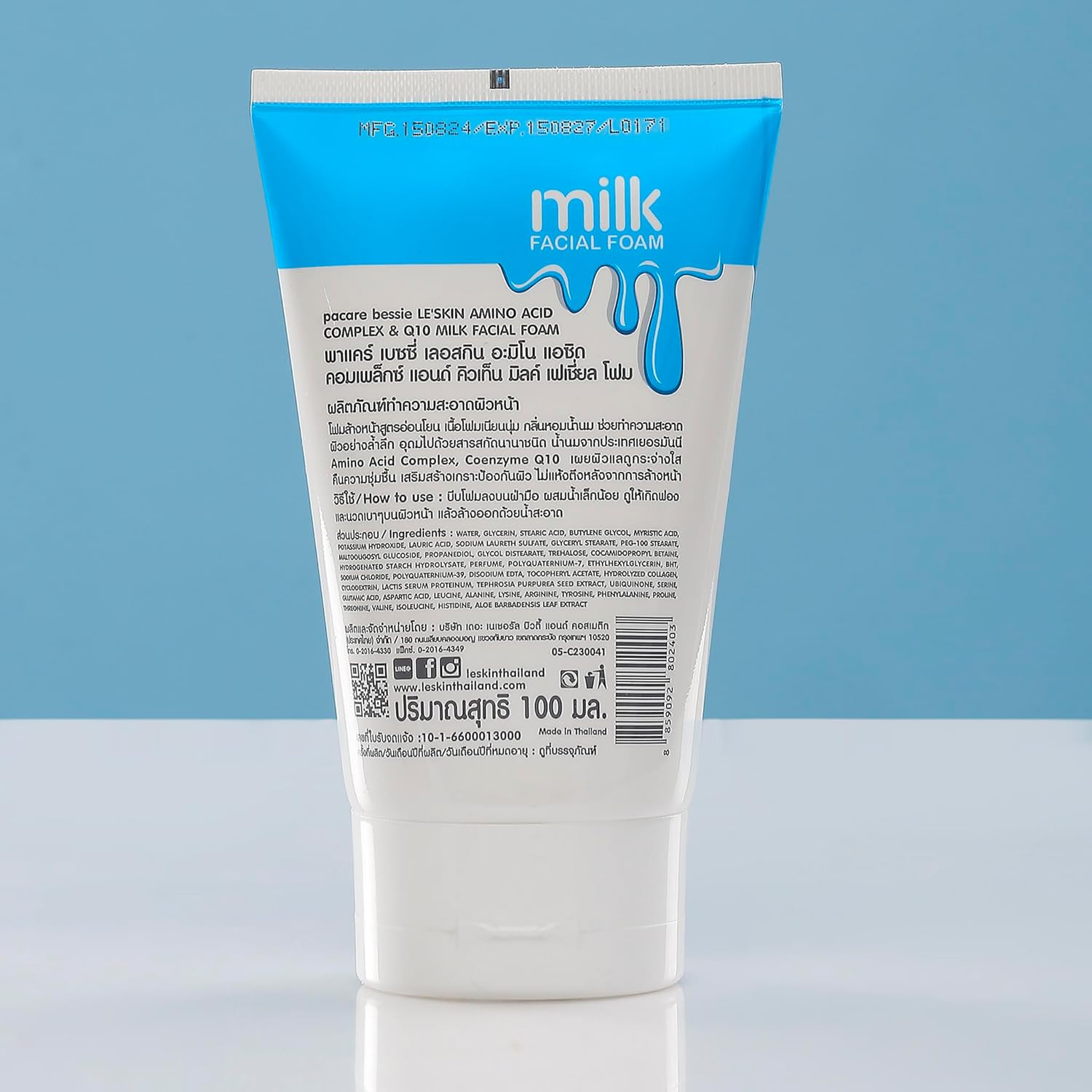Le’SKIN Hydrating Face Wash – Milk Protein Facial Foam, Brightening & Deep Cleansing – Suitable for All Skin Types – 100 ml, Made in Thailand