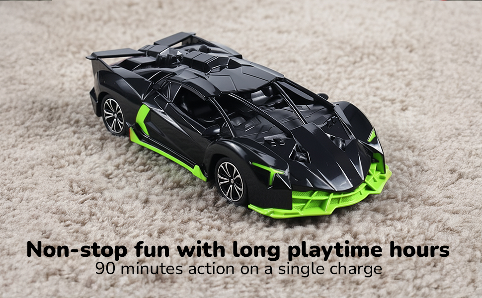 The built-in 500 mAh Li-ion battery delivers long-lasting play. Keep the excitement going with up to 90 minutes of drive time.