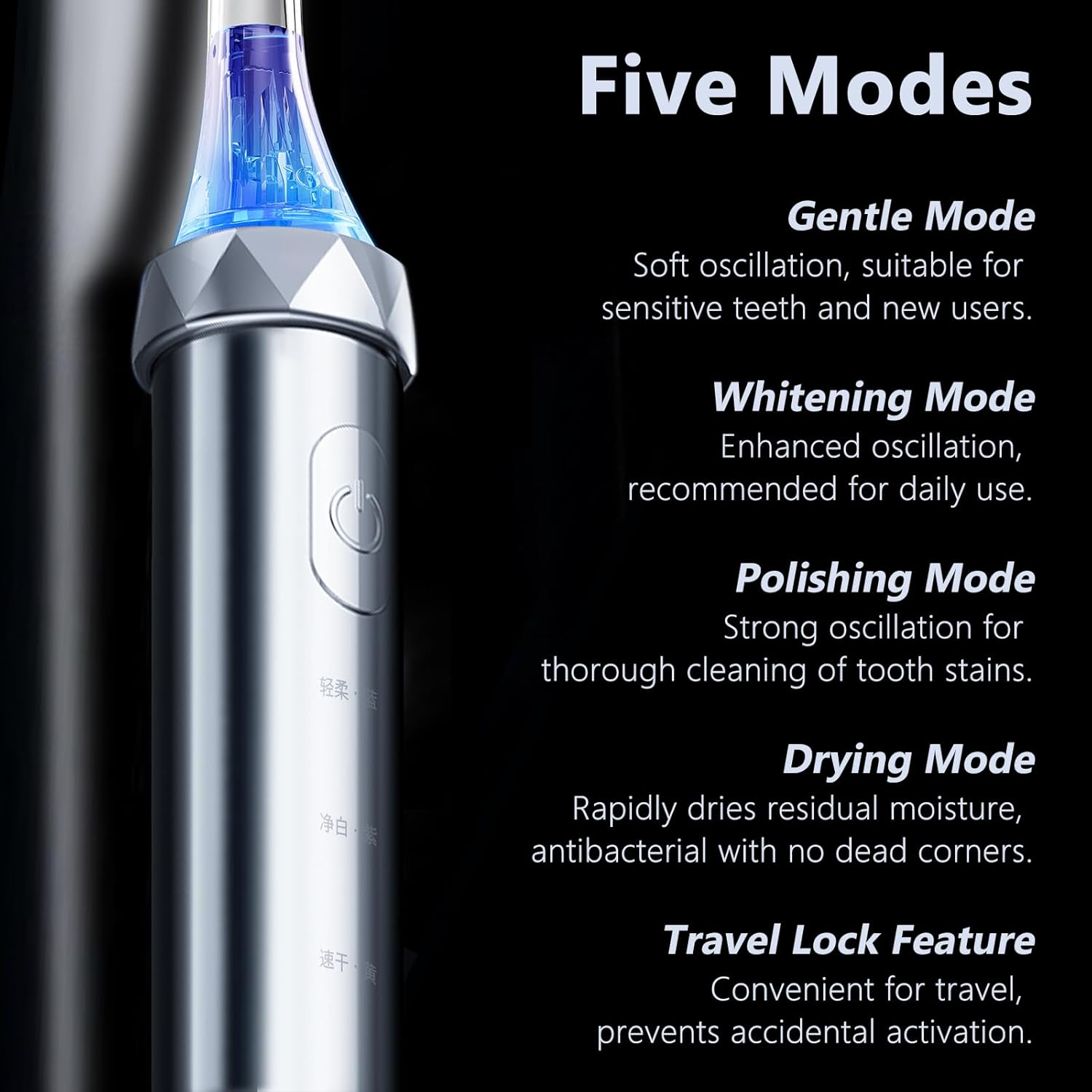 Little Ice Pop Electric Toothbrush for Adut, Ultra Whitening 38,000 VPM Motor, 5 Cleaning Modes 2 Minute Timer, Type C USB Rechargeable, One Charge for 60 Days, Gift for Birthdays – Silver