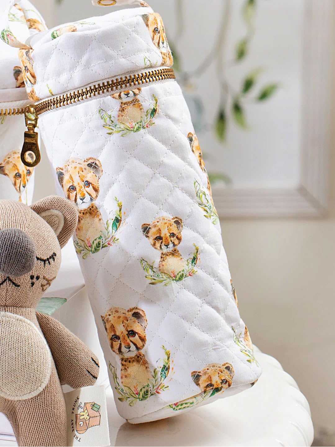 Little Leo bottle cover insulates and protects baby bottles. Soft, washable cotton with easy fit.