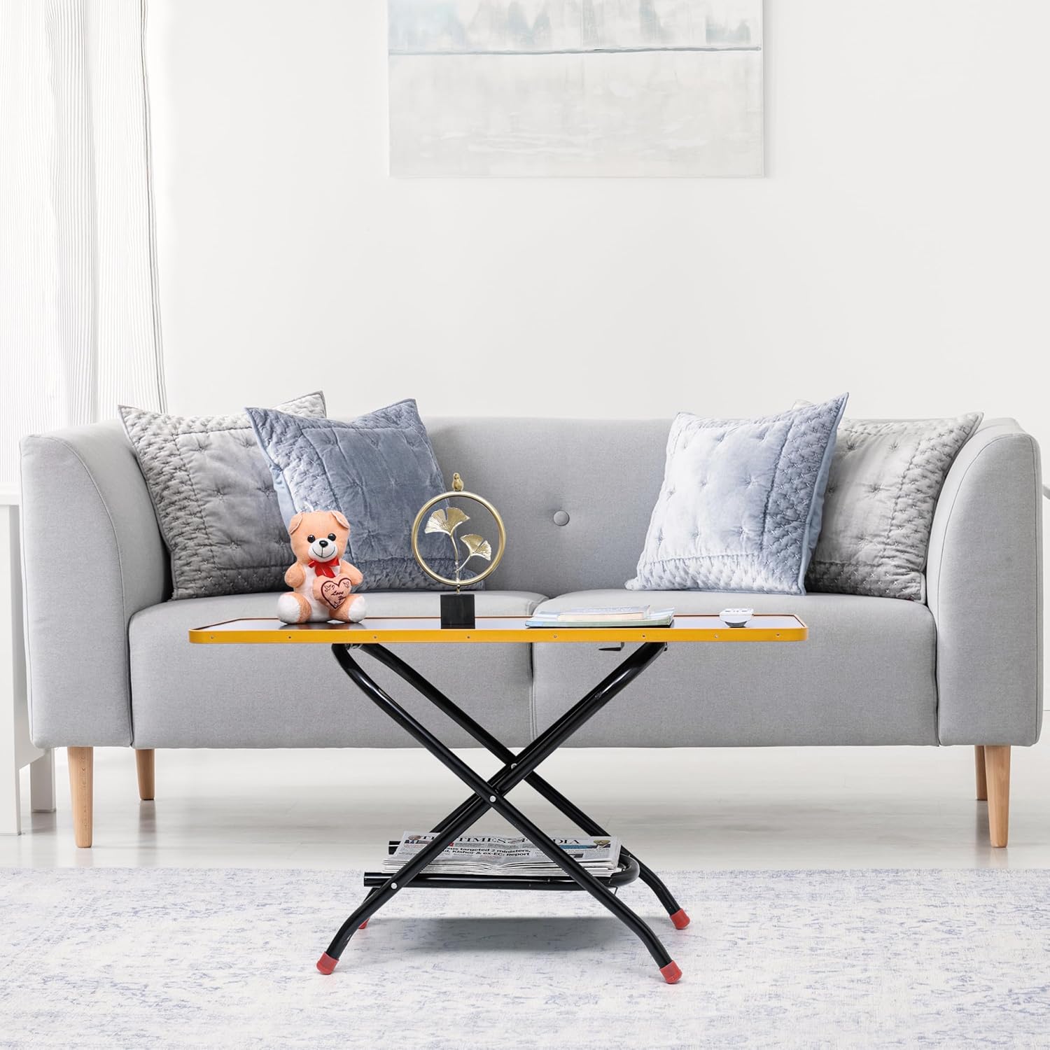 Easy to Assemble & Store: The living room table can be easily assembled just unfold the metal legs and lock them on the holder under the table for safety and stability.