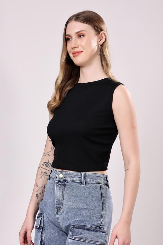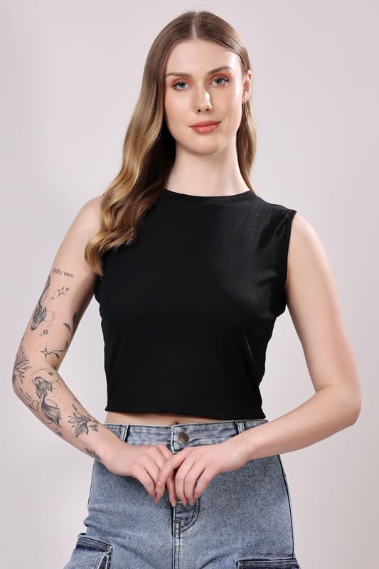 London Hills Women Tops | Crop Top for Woman | Tank Tops for Woman | Sleeveless Tops’ for Women Stylish | Halter Neck | Stretchable Crop Top | Ribbed Top’