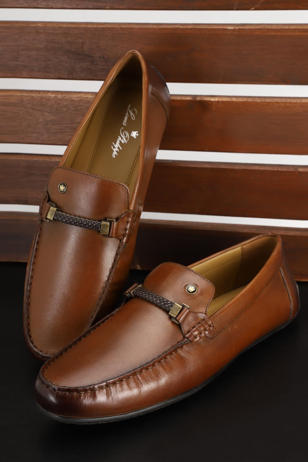 For the style-conscious modern man, Louis Philippe`s brown solid loafers offer distinguished panache for any formal occasion. Crafted from premium materials, these loafers feature a durable TPR sole that guarantees the perfect blend of comfort and grip. The easy slip-on design and elegant, solid color make these a great choice for sharp outfits. It`s time you upgraded your formal footwear game with these impeccable loafers from Louis Philippe.