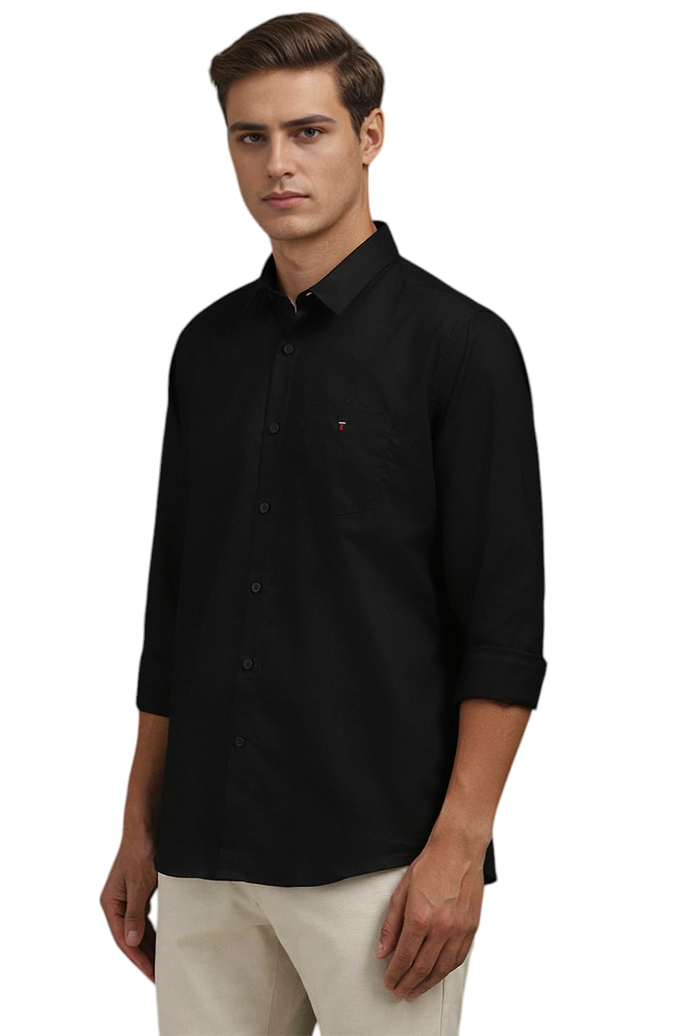 Showcase your refined sartorial taste in this Black Solid shirt from Louis Philippe Sport at a Casual event. Tailored in Slim Fit , this shirt features a Regular Collar , Full Sleeves , and is crafted from exquisite 100% Cotton .