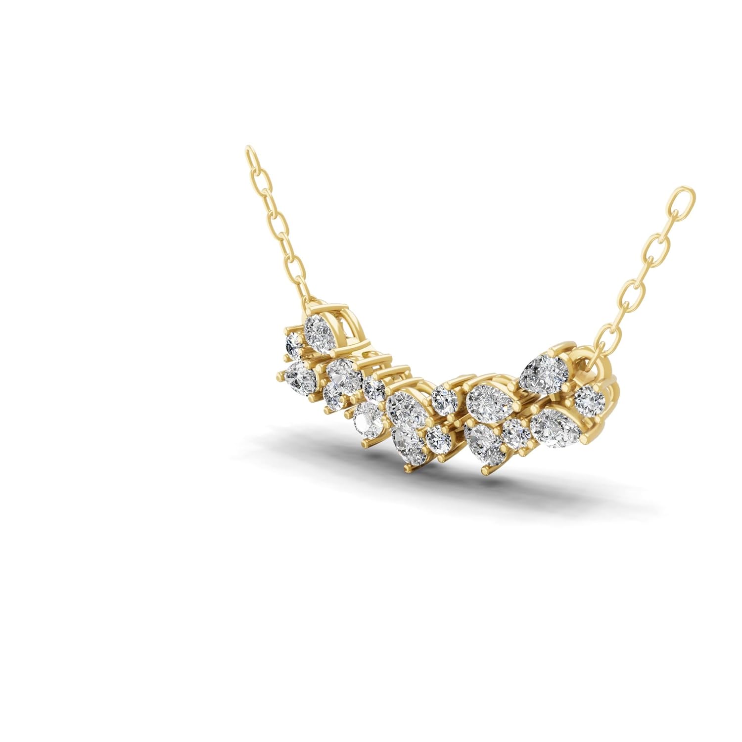 Elevate your jewellery collection with this exquisite 14K gold pendant necklace featuring a stunning wreath design. The pendant’s intricate design creates a harmonious blend of curved lines and brilliant stones, suspended from a sturdy gold chain. Each lab-grown diamond is carefully selected and precisely set to ensure maximum sparkle and durability. The wreath-style arrangement offers a timeless appeal that works beautifully for both special occasions and everyday wear. This pendant necklace represents the perfect marriage of classic design and modern technology, making it an ideal choice for those who appreciate both beauty and innovation in their fine jewellery pieces.