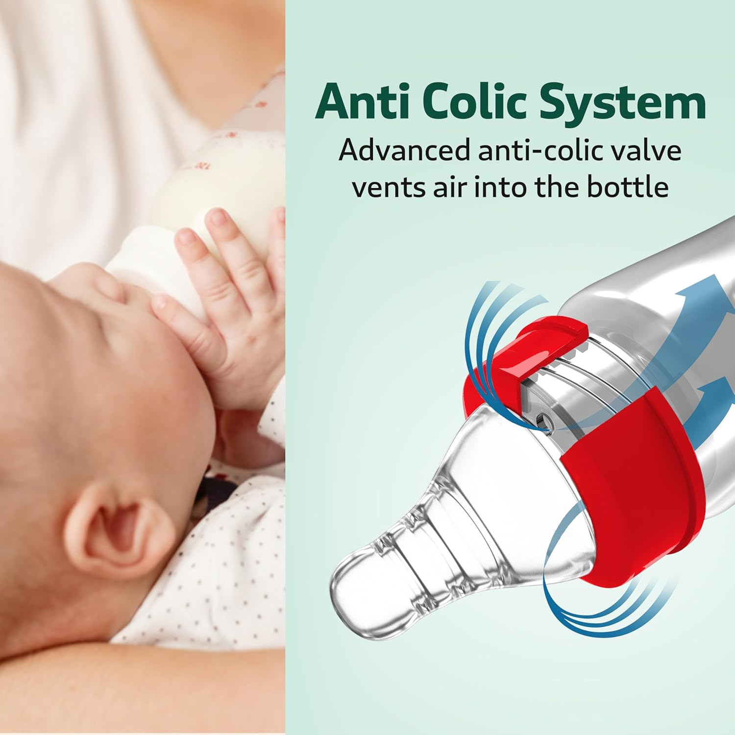 LuvLap Natura Flo Wide Neck Glass Feeding Bottle, New Born/Infants/Toddler Upto 3 Years, BPA Free, Ergonomic Shape is Easy to Hold, with Anti Colic Nipple, 250ml