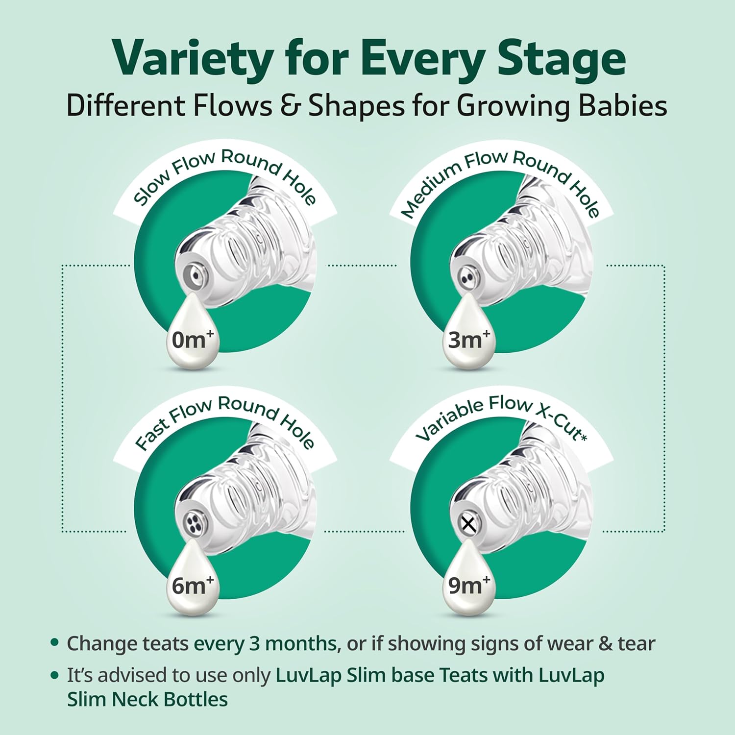 LuvLap Natura Flo Wide Neck glass bottles are manufactured especially for feeding newborns and small children. The bottle has a broad neck, a screw-on lid that secures a silicone nipple that lets the infant sip from it just like it would from a breast. In particular, for moms who are returning to work or who find it difficult to breastfeed, the bottle is frequently utilized as an addition to or a substitute for nursing. Glass bottles are simpler to clean, don’t retain flavors, residues or odours, and are more dependable and long-lasting.