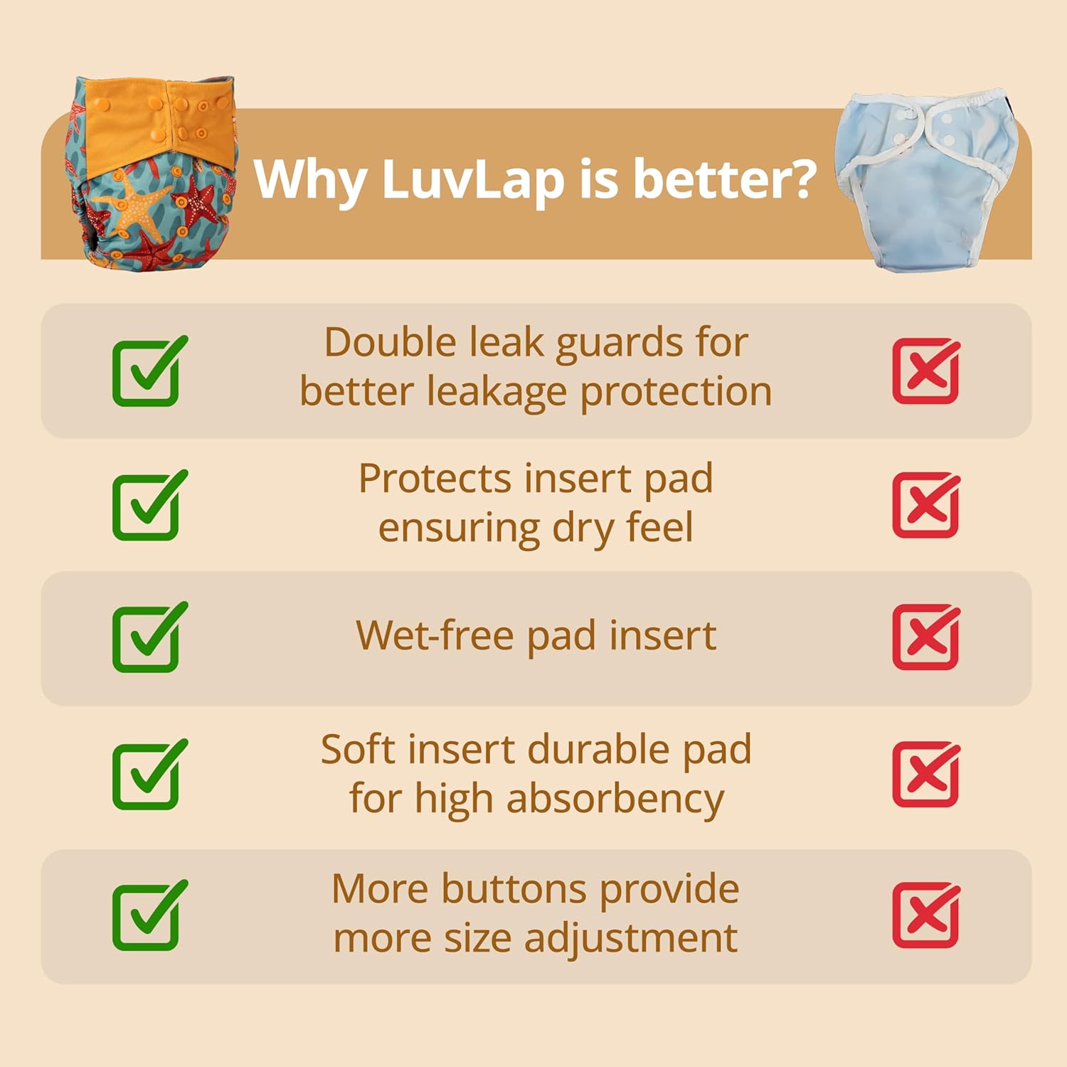 Greetings, mothers! Introducing the LuvLap Reusable Cloth Diapers, which are designed to provide your child the maximum comfort possible. They are made of bamboo charcoal fabric that is exceptionally soft and absorbent. You can say good-bye to leaks and keep your baby dry and comfy all day and night with our leak-proof technology. These cloth diapers are perfect for babies between the ages of 0 and 3 since they offer worry-free days and cozy nights, which is advantageous for both mama and baby! In addition to being convenient, these reusable, machine-washable cloth diapers are also environmentally friendly. Choose LuvLap for your baby’s comfort and your peace of mind. From hassle-free diaper changes, greetings, and goodbye to disposables that squander!