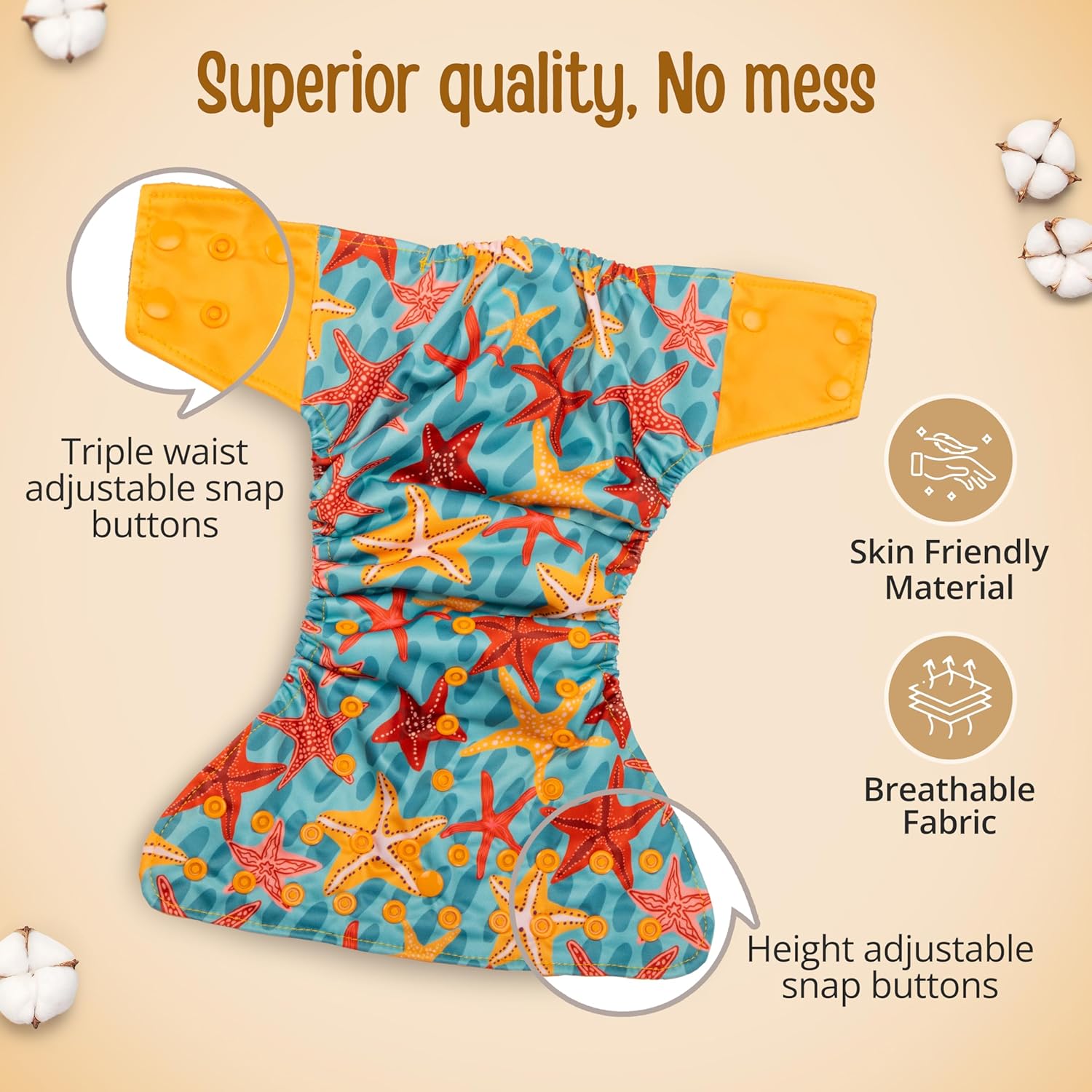 Easy to Clean: Simply toss them in the washing machine for hassle-free cleanup. These diapers are not only convenient but also cost-effective, in the long run.