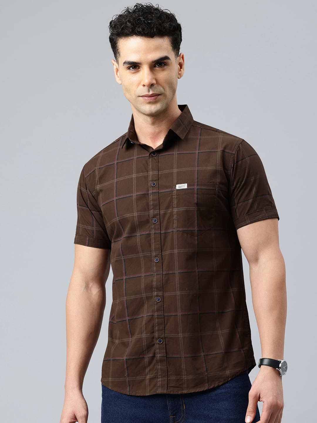 Majestic Man Men Comfort Slim Fit Checked Pure Cotton Half Sleeve Casual Shirt