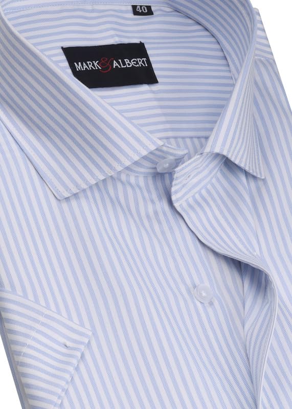 MARK & ALBERT Men’s Striped Half Sleeves Regular Fit Shirt | Stretchable Fabric