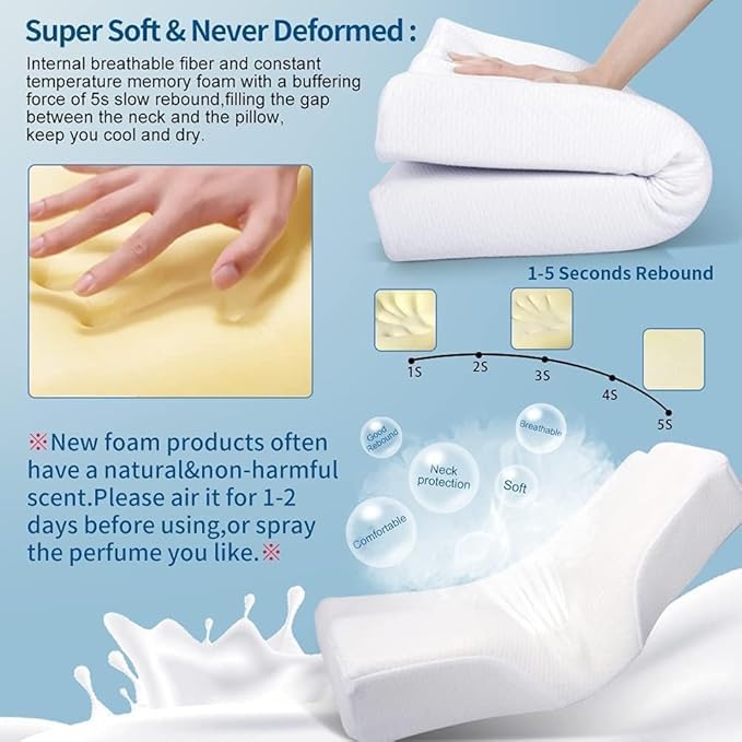 A SLEEP SAVIOR REALLY HELP:Pick out a great neck pillows for pain relief ,you may find your sleeping quality improves unexpectedly. contour pillow is perfect for the elderly, IT and those with sleep disorders. Memory foam will have a slight polyurethane smell, and the smell may be more obvious after passing through a high temperature and airtight transportation environment. This is a normal phenomenon. After receiving it, please place it in a cool and ventilated place for 7-10 days.