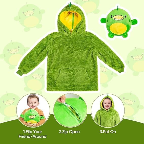 Your kids will stay warm and cozy the Children’s Maxi Wearable Blanket with Hood Blanket with Sleeves Children’s Maxi is the fun, new pet that’s also a super warm and soft hoodie! It stores as a pet but opens up to an ultra-soft and super warm oversized hoodie! The pet folds magically into the hood and zips securely inside! Perfect for when your kids are playing outside or lounging around the house. Children’s Maxi is one size fits all, so it’s great for kids of any age!