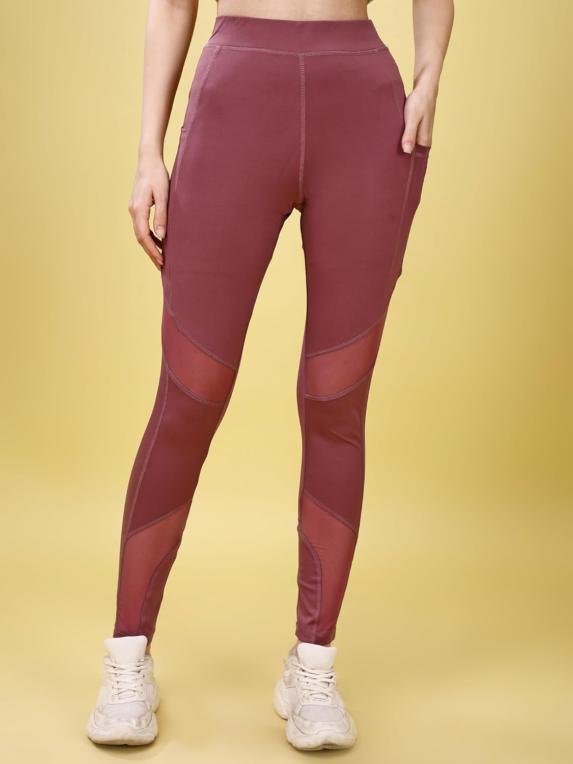 Mehrang Stretchable Gym Pants for Women & Tights for Women Workout with Mesh Insert & Side Pockets