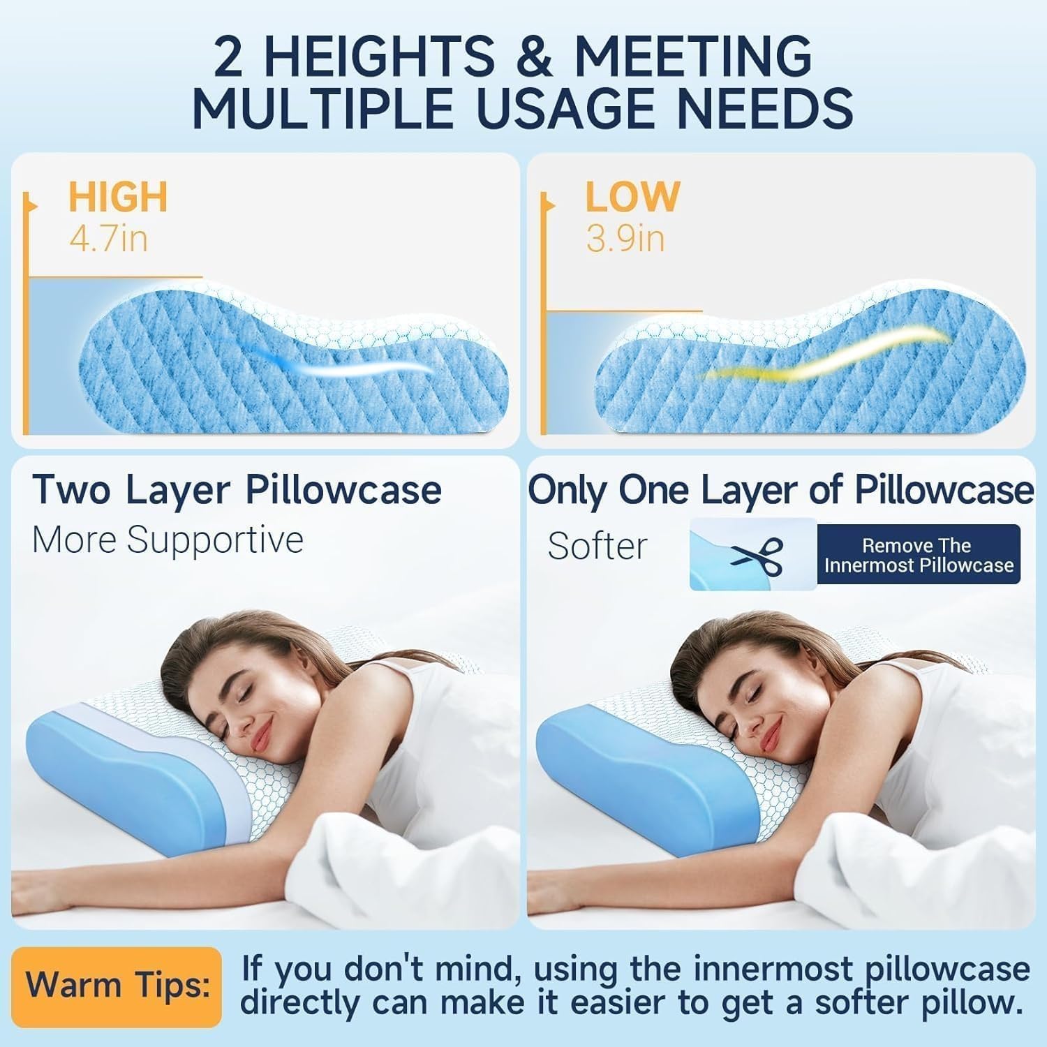 Breathable Skin-friendly Pillowcase: The pillow for sleeping with breathable skin-friendly fabric and soft makes you experience a deep sleep all night. The orthopedic pillow features excellent moisture absorption and breath-ability, maintaining consistent firmness and comfort throughout the year
