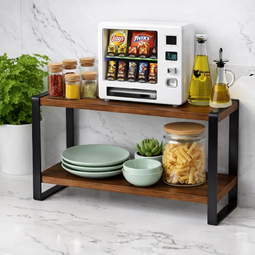 Upgrade your kitchen storage with the Uteez 2-Tier Wooden Kitchen Rack, designed to give you more space, better organization, and a stylish look on your countertop. Crafted with a strong metal frame and premium engineered wood shelves, this rack delivers durability along with elegant design. Use it as a masala rack, spice organizer, condiment stand, jar holder, tea/coffee shelf, multipurpose organizer, or a small display shelf. Its compact vertical layout makes it ideal for kitchens with limited counter space, while the combination of wood + metal makes it look premium in any modern home. A practical, stylish and long-lasting organizer for every kitchen.
