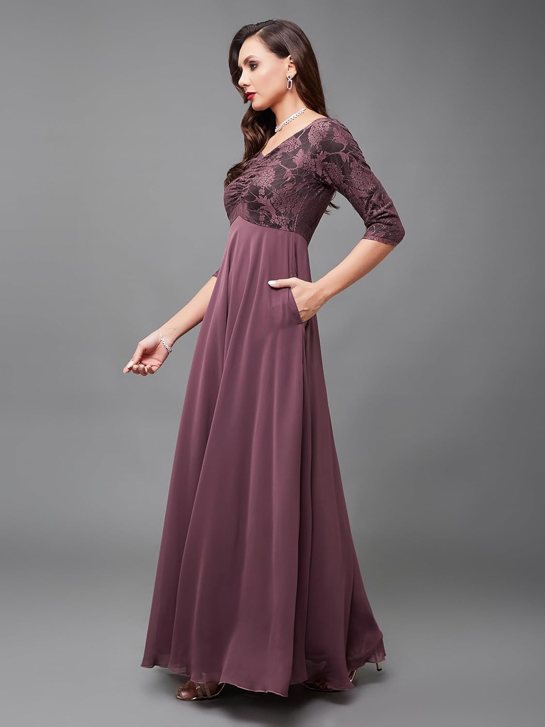 Spruce up your wardrobe with this dress from Miss Chase available on Amazon. You can pair this self design maxi fit & flare with some nice pair of heels and you are good to go. It is perfect for every occasion from a day out with friends or a night of get-togethers with family.