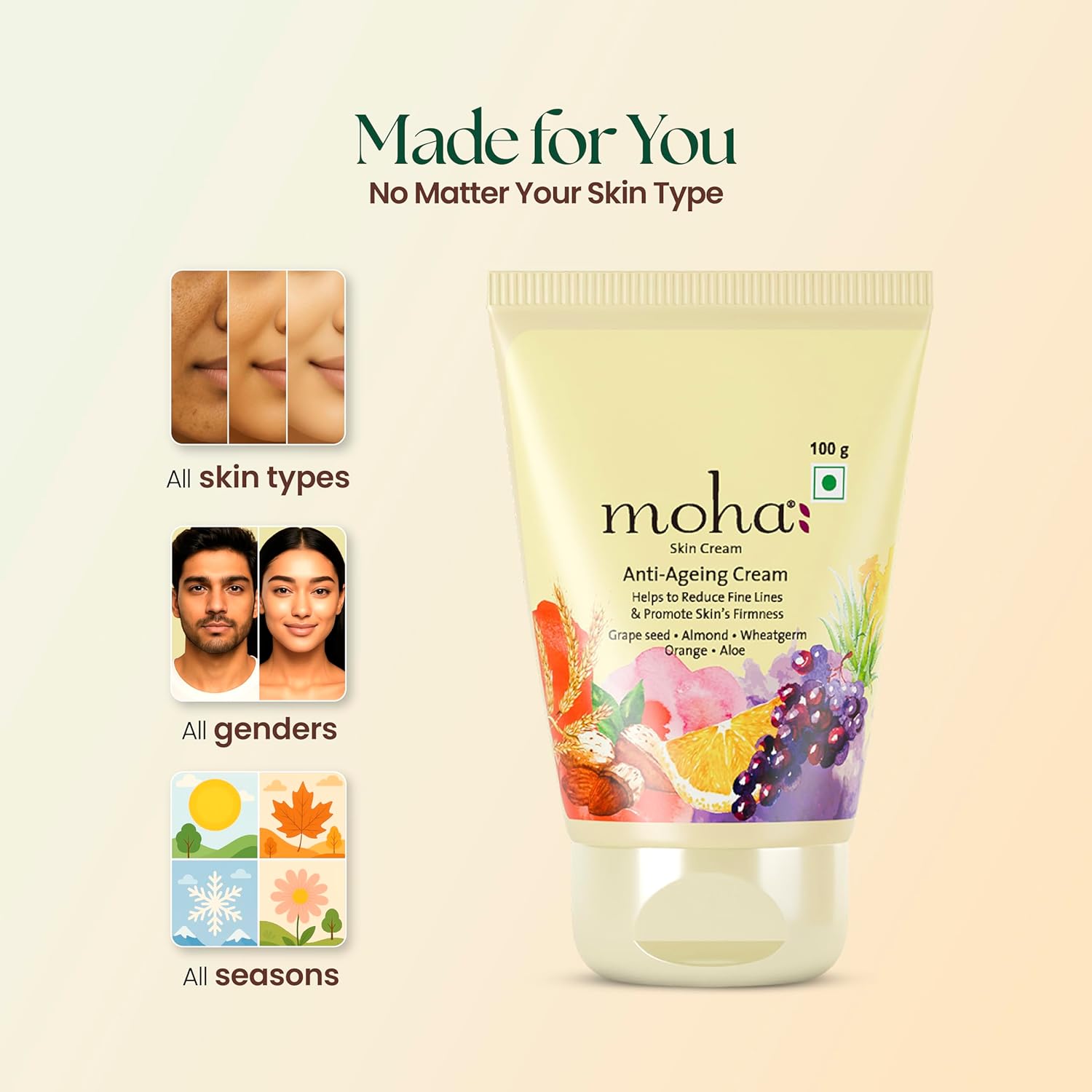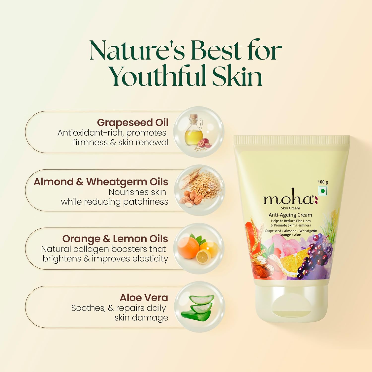 Moha: : Anti Ageing Skin Cream, Youthful & Glowing Skin, With The Blend Of Pure Herbal Oils, Reduces Fine Lines, Wrinkles, Pigmentation, Dark Spots, Suitable For All Skin Types – (Pack Of 1, 100Gm)
