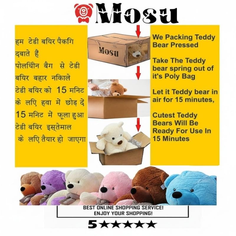 MOSU Big, Dark & Handsome Teddy Bear brings warmth, charm, and endless cuddles. This huge 6-feet teddy bear makes the perfect gift for any occasion, offering an irresistibly cute and comforting cuddle buddy for everyone. Its pillowy-soft body is designed for big hugs, deep snuggles, and all-day comfort. Crafted with premium-quality polyester plush, MOSU ensures exceptional softness, durability, and a luxurious feel you’ll love gifting to someone special. Measuring 90 cm from head to paw, this large plush bear delivers an extra-special surprise—perfect for birthdays, anniversaries, and especially Valentine’s Day. Choose MOSU for a teddy that makes every hug unforgettable.