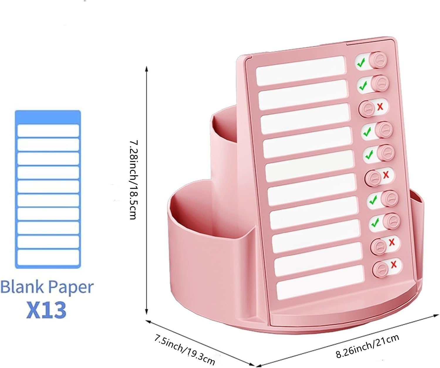 product: Pencil Holder Color: Pink, Blue, White Material: ABS Include packaging: 1 x Pencil Pen Holder Organizer 360 Rotatable: Multipurpose Pen Organizer 7 Compartments, Help to Classify Items, The Pencil Holder Can be Rotated at Will For Easy Take Out and Quickly Select The Stationery You Need Planning Board Writing your Daily to-do and followit Multipurpose Desktop Organizer: Suitable for many occasions, like office, school classroom, living room, kitchen and bathroom use and decorations. Can be used for stationery/office supplies, makeup tools and small household items. Help you save space, improve the convenience of your office and study life.