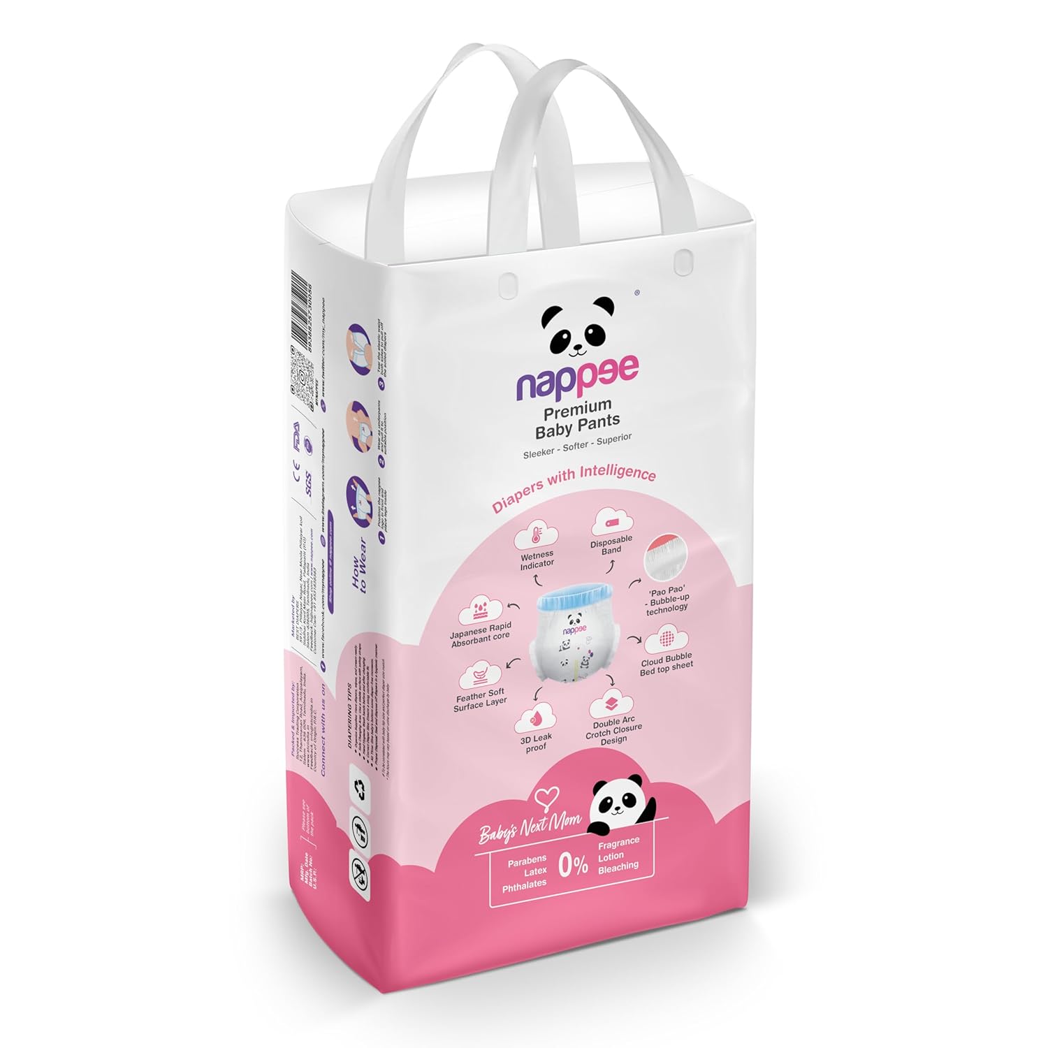 Why Choose Nappee Diapers? Ultra-Soft Materials: Gentle on sensitive skin. Super Absorbency: Keeps your baby dry for longer. Leakage Protection: Secure leg cuffs and stretchable waistbands. Comfortable Fit: Ensures freedom of movement at every stage. Wetness Indicator: A helpful guide for timely changes.