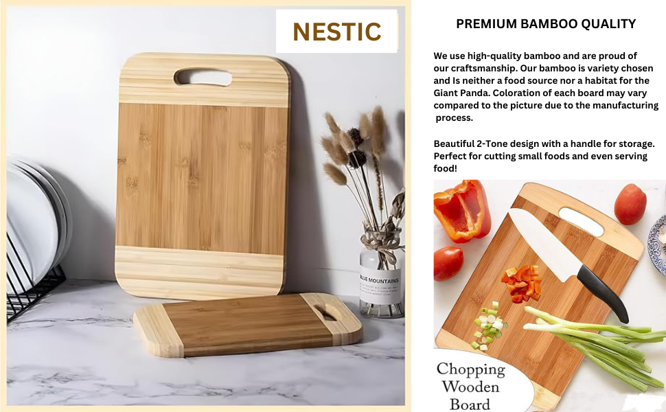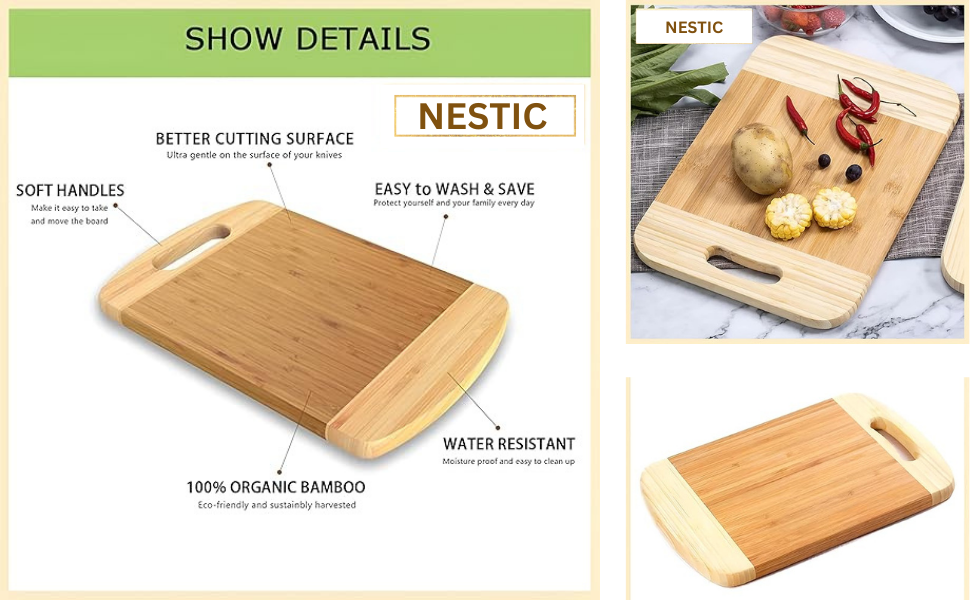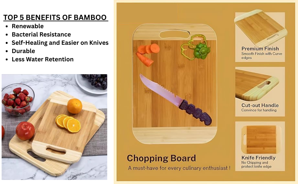 ๐๐๐ฌ๐ข๐ ๐ง: Bamboo cutting board is made from high quality, top-grade, eco-friendly bamboo tree, 100% BPA-free & doesnโt contain any chemicals or toxic elements.