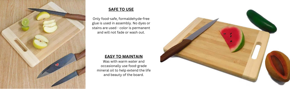 ๐๐ฎ๐ซ๐๐๐ฅ๐ & ๐๐๐ฌ๐ฒ ๐๐จ ๐๐ฅ๐๐๐ง: Thick Bamboo that can withstand heavy blows, chopping and soaking, would not warp or split, and is more durable than most brand cutting board whose material is wood. Clean with mild soap and water; dry thoroughly. Do not submerge in water to extend life of the boards.