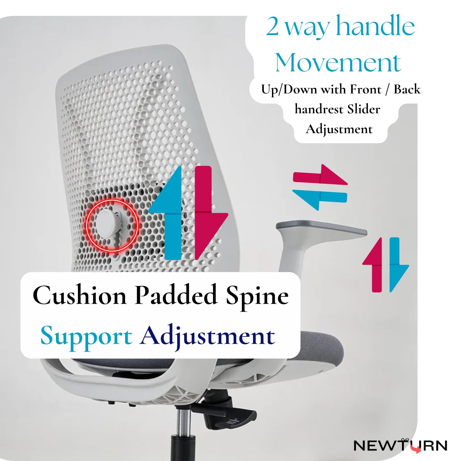 NEWTURN Cosmos Mid-Back Mesh Ergonomic revolving(pre-Assembled) Work from Home/Office/Mesh/WFH/Desk/Computer Chair with Adjustable Lumbar Support/Slider Handles & 2 Yrs Parts Replc. Wrty (White)