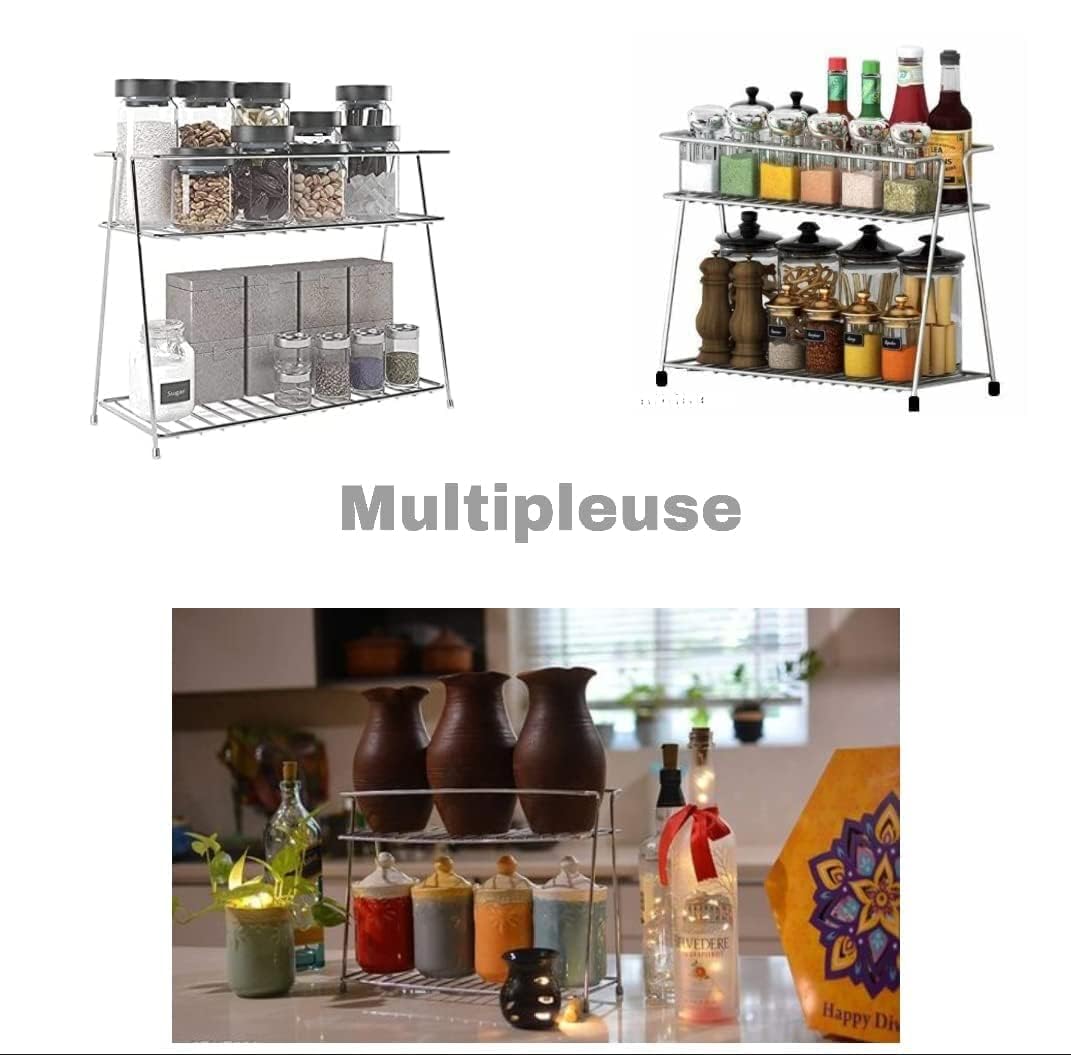 NH10 DESIGNS Tabletop Spice Rack For Your Kitchen_Countertop Spice s And Masala Rack 2 -Tiered Shelf And 2 Layer Stainless Steel And Special Countertop Spice Rack-(Pack Of One) (Nhsp)