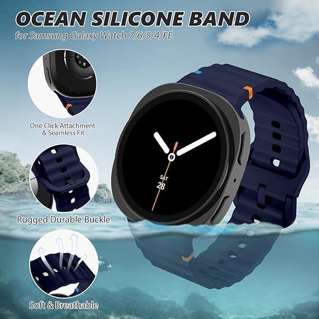 【Wave Design】- Our galaxy watch 8 40mm 44mm band adopts a unique wave design,the wave-shaped gap between the band and the wrist allows air to enter more fully, making it more breathable and sweat-proof.