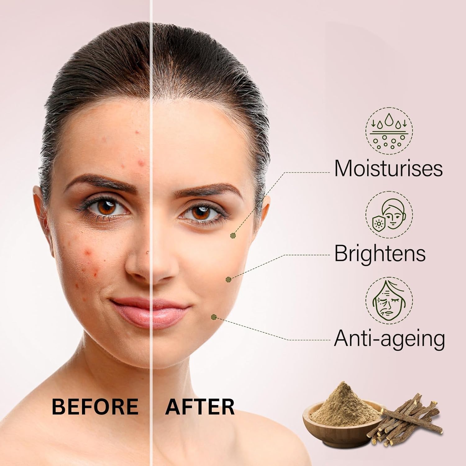 Brightening Ingredients: Formulated with 2% Niacinamide, Manjistha, Mulethi, and Turmeric to reduce melanin formation and enhance skin brightness.