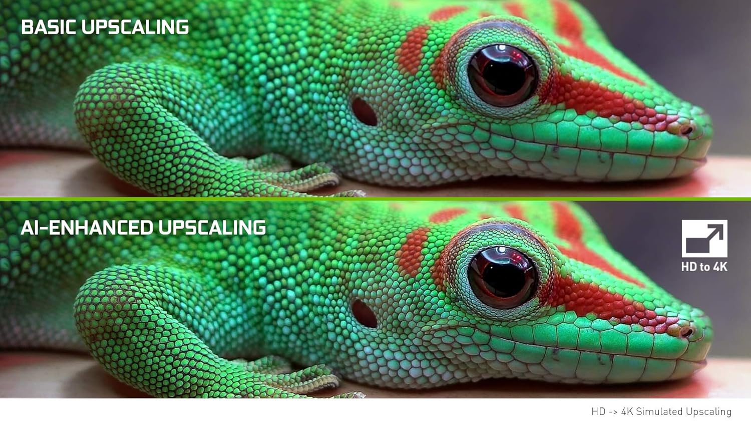 Dolby Vision – Atmos. Bring your home theater to life with Dolby Vision HDR and Dolby Atmos surround sound—delivering ultra-vivid picture quality and immersive audio. Enhance HD video in real-time to 4K for clearer, crisper visuals using next-generation AI upscaling.