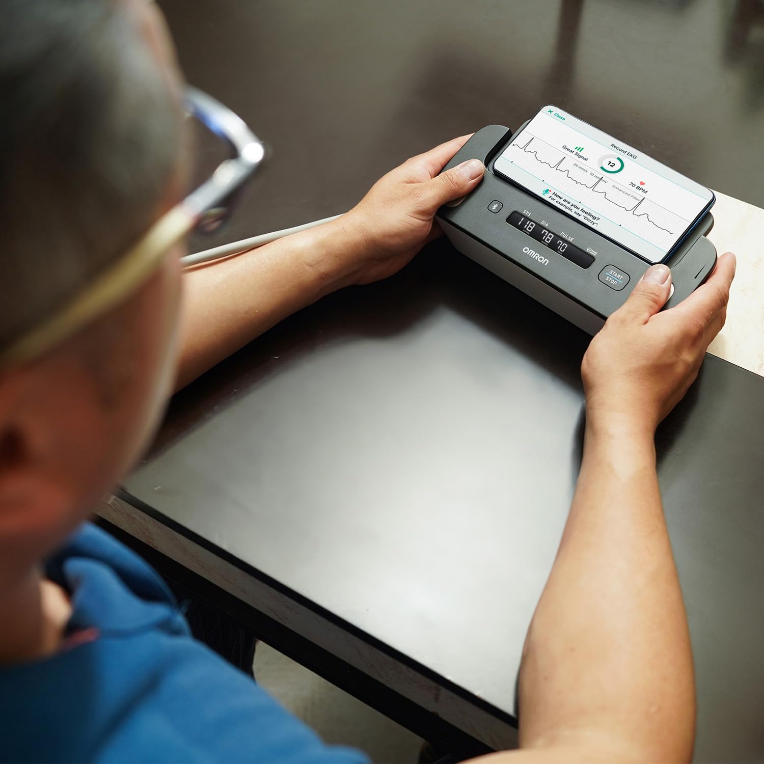The first at-home blood pressure and ECG monitoring device Both blood pressure and EKG are risk factors for stroke. Complete allows those living with AFib and other cardiac conditions a simple way to keep track of important measurements and know when to seek treatment. And Complete wirelessly connects via Bluetooth to our proprietary Omron Connect mobile app, which allows you to track and store unlimited readings and share results with family or healthcare providers. It works with select Apple and Android devices.
