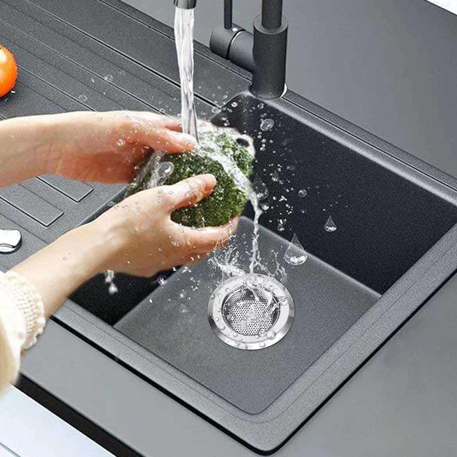 Drain Strainer Covers Your Sink Hole Well Thus Traps All Food – Hair – Dirt In The Drain Net Basket & Prevents Clogging Of Pipe. Only Clean Filtered Water Flows In Pipe Without Any Dirt.